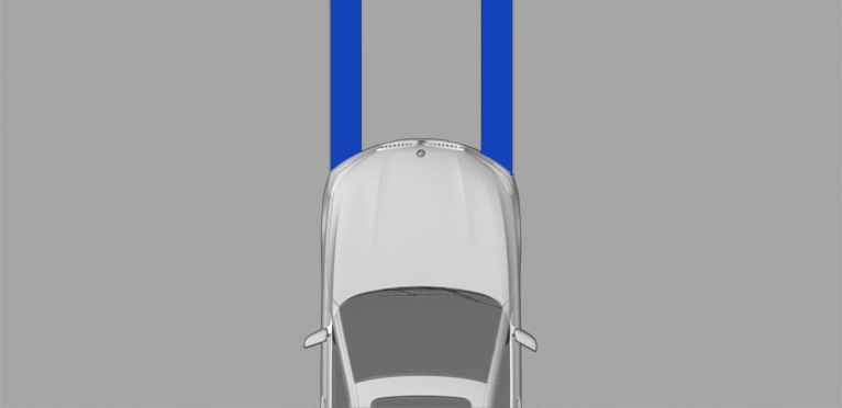 For the parking space search when driving past parked vehicles at a speed of up to approx. 22 mph/35 km/h and a distance of max. 5 ft/1.5 m.
