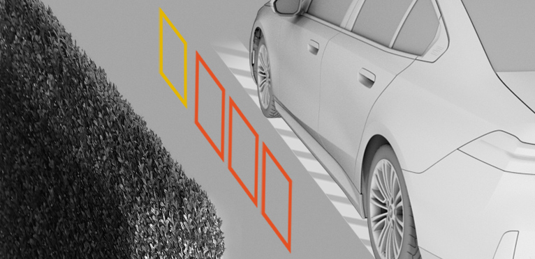 For parking spaces that are only marked with lines on the ground. The system orients itself according to objects.