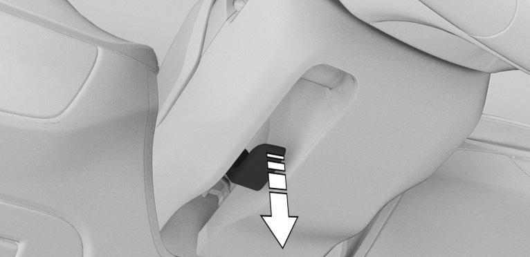 Release buckle tongue from the fixture on the rear shelf.