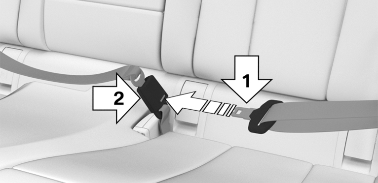 Insert the upper buckle tongue in the seat belt buckle, arrow 2.