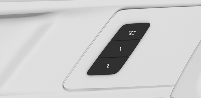 Press the desired memory button 1 or 2 while the LED is illuminated. A signal sounds.