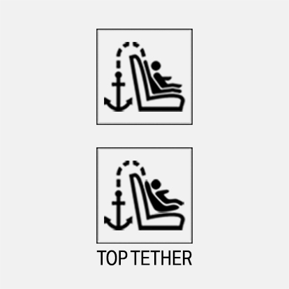 The respective icon shows the attachment point for the upper retaining strap. Seats with an upper top tether are marked with this icon. It is located on the rear seat backrest, the rear shelf or the rear seat. |