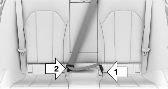 The two outer seat belt buckles of the rear seats are intended for the persons sitting on the left and right.