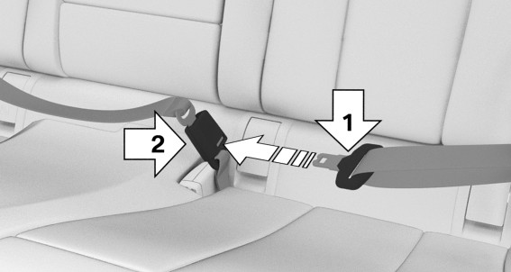 Insert the buckle tongue into the seat belt buckle. The seat belt buckle must engage audibly.