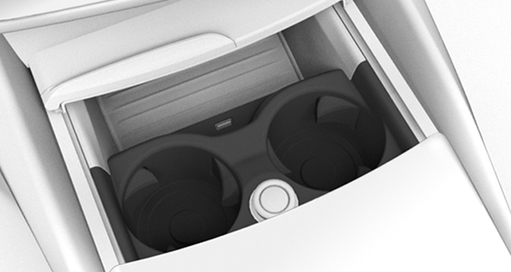 The vehicle interior contains multiple storage compartments for stowing objects.