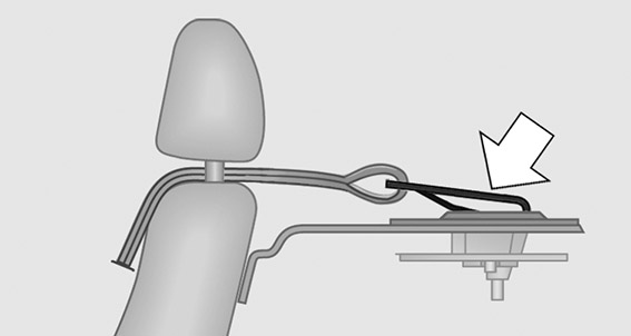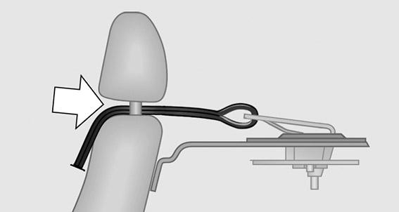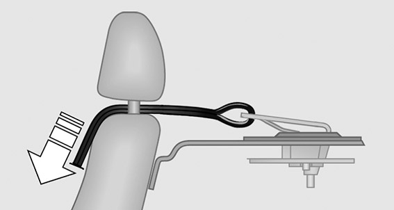 For the middle seat, guide it over or along both sides of the head restraint to the attachment point where applicable.