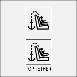 The respective icon shows the attachment point for the upper retaining strap. Seats with an upper top tether are marked with this icon. It is located on the rear seat backrest, the rear shelf or the rear seat. |