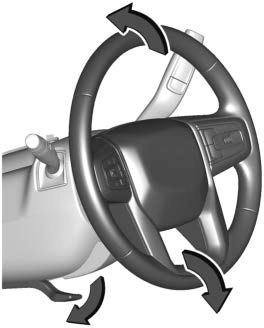 To adjust the tilt and telescoping steering wheel, if equipped: