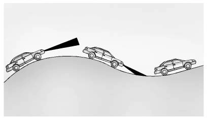 How well the cruise control works on hills depends on the vehicle speed, the load, and the steepness of the hills. When going up steep hills, pressing the accelerator pedal may be necessary to maintain vehicle speed.