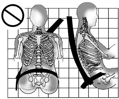 pelvic bones and you would be less likely to slide under the lap belt. If you slid under it, the belt would apply force on your abdomen. This could cause serious or even fatal injuries.