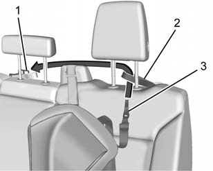 Reinstall the head restraint or headrest before the seating position is used. See “Head Restraint or Headrest Removal and Reinstallation” under Lower Anchors and Tethers for Children (LATCH System) 0 74 for