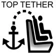 A top tether (3, 4) is used to secure the top of the child restraint to the vehicle. A top tether anchor is built into the vehicle. The top tether attachment hook (2) on the child restraint connects to the top tether anchor in the vehicle in order to reduce the forward movement and rotation of the child restraint during driving or in a crash.
