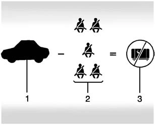 positions (1), and the maximum vehicle capacity weight (2) in kilograms and pounds.