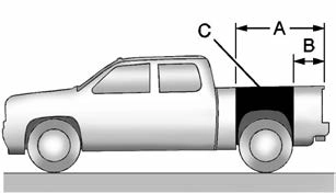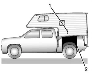 Refer to the Truck-Camper Loading Information label in the glove box for dimensions A and B as shown in the following illustration.