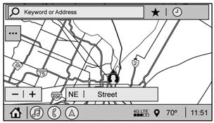 When approaching a maneuver, the map will automatically zoom in to show both the vehicle icon and the upcoming maneuver to give a better view of the maneuver. Once the maneuver is complete, the system will zoom back to the previous zoom level.