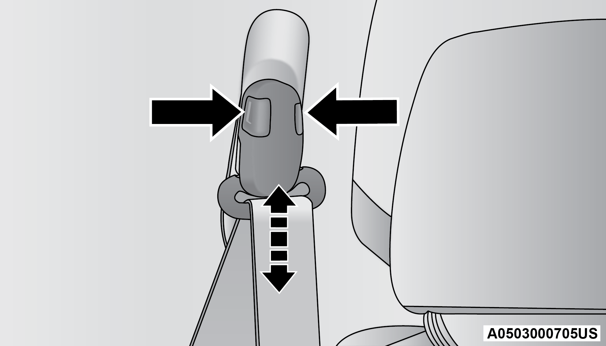 As a guide, if you are shorter than average, you will prefer the shoulder belt anchorage in a lower position, and if you are taller than average, you will prefer the shoulder belt anchorage in a higher position. After you release the anchorage button, try to move it up or down to make sure that it is locked in position.