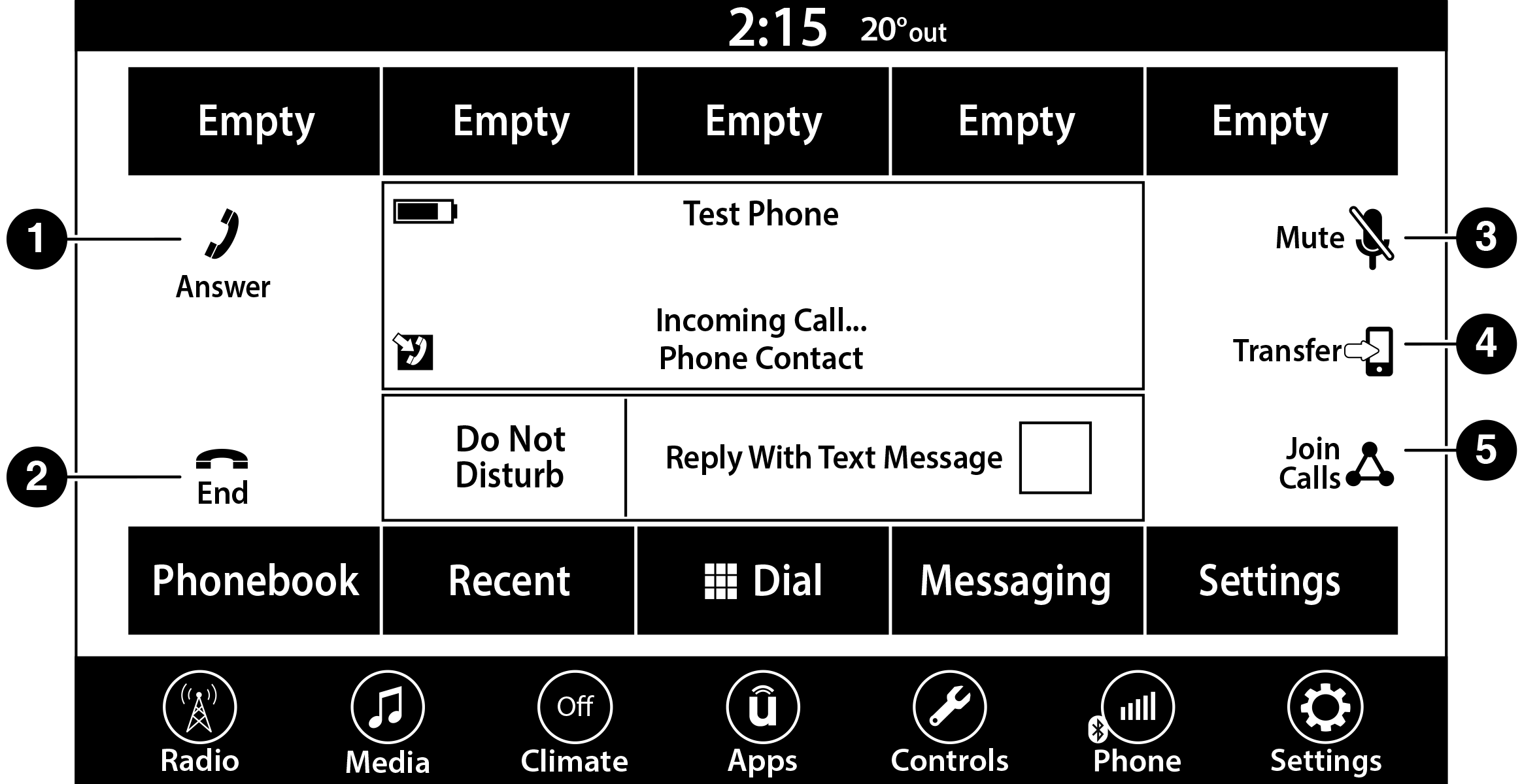 Auto reply with text message is only available on phones that support Bluetooth® Message Access Profile (MAP).