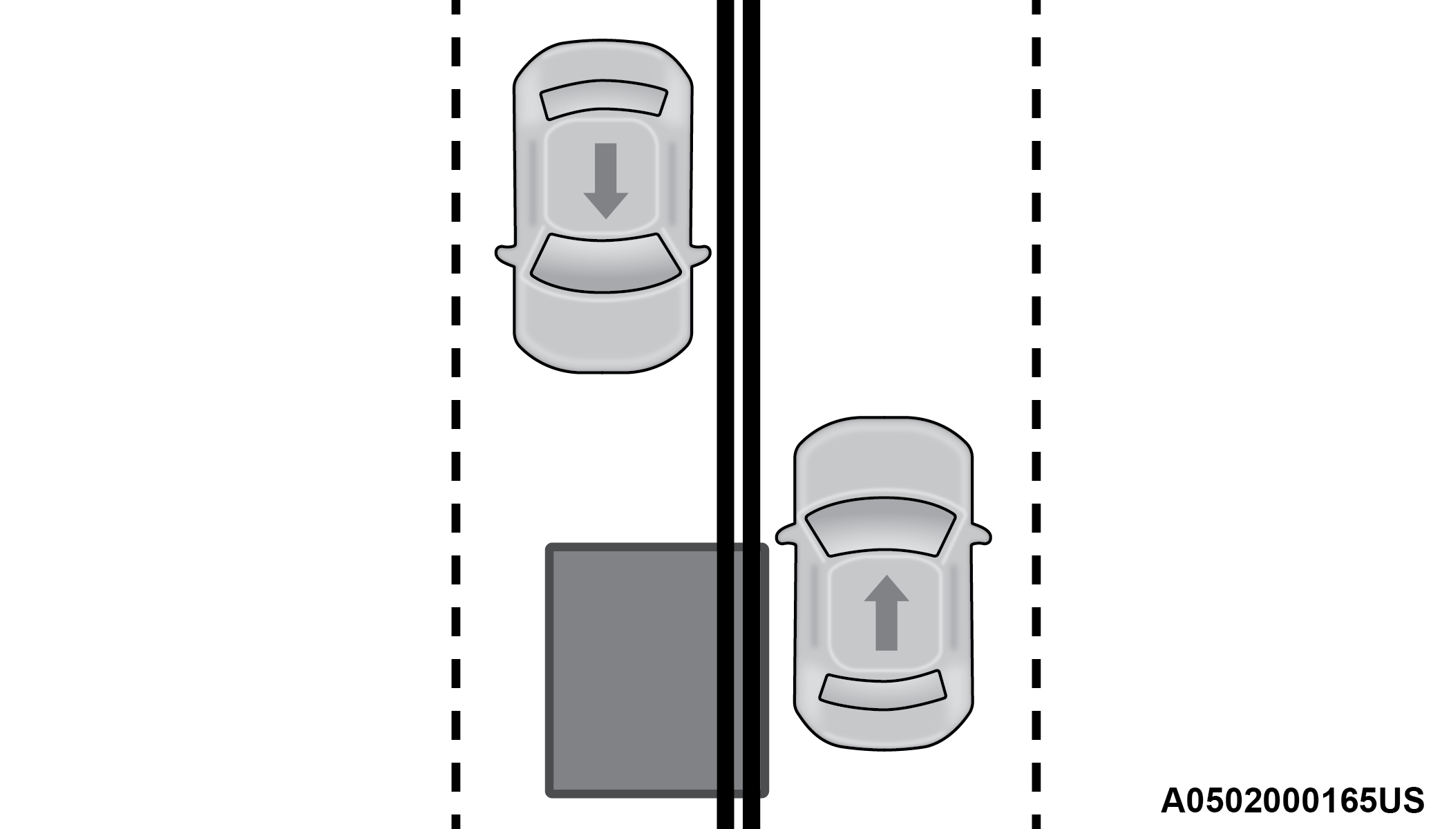 In a parking lot situation, oncoming vehicles can be blocked by vehicles parked on either side. If the sensors are blocked by other structures or vehicles, the system will not be able to alert the driver.