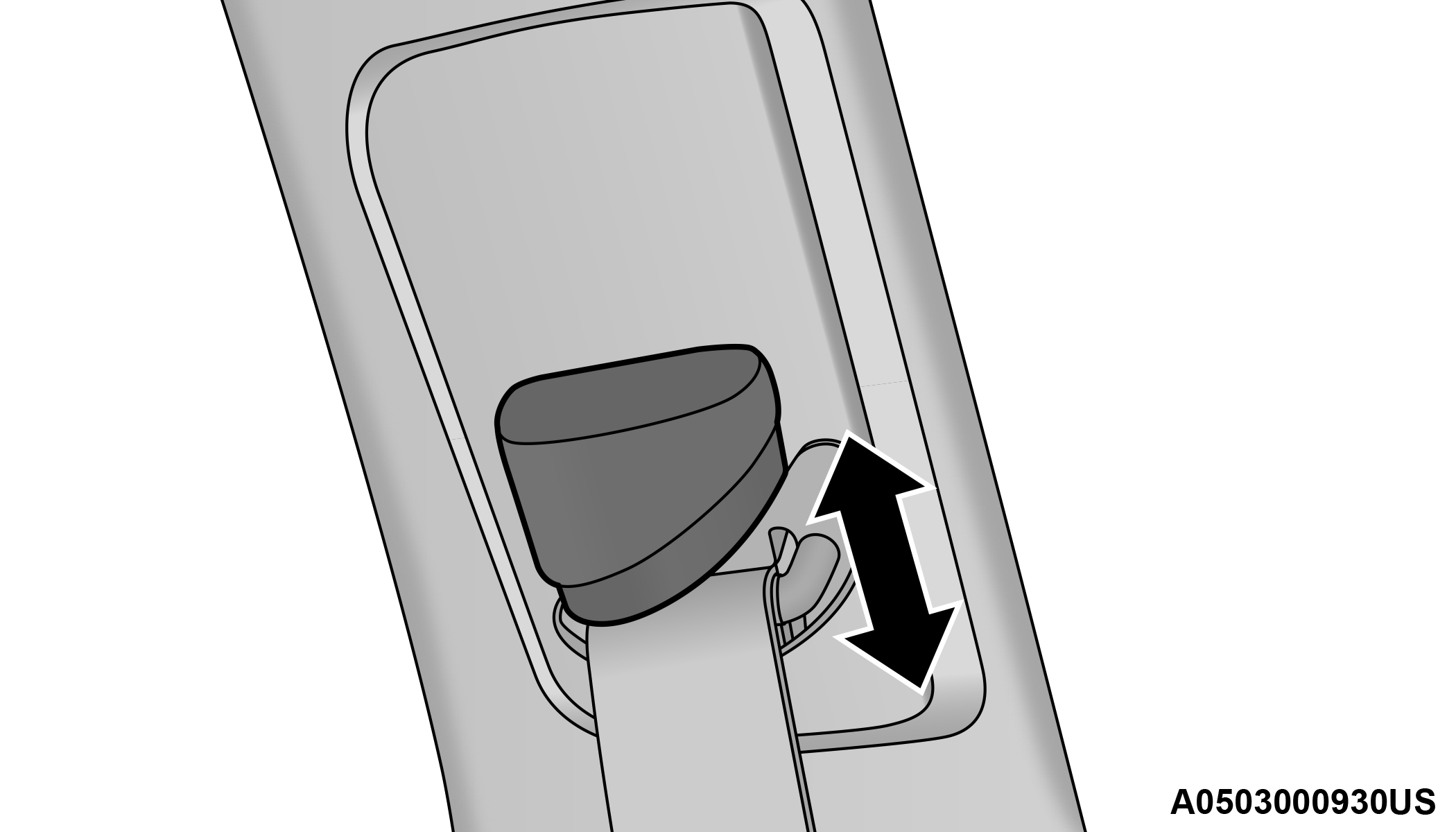 The adjustable upper shoulder belt anchorage is equipped with an Easy Up feature. This feature allows the shoulder belt anchorage to be adjusted in the upward position without pushing or squeezing the release button. To verify the shoulder belt anchorage is latched, pull downward on the shoulder belt anchorage until it is locked into position.