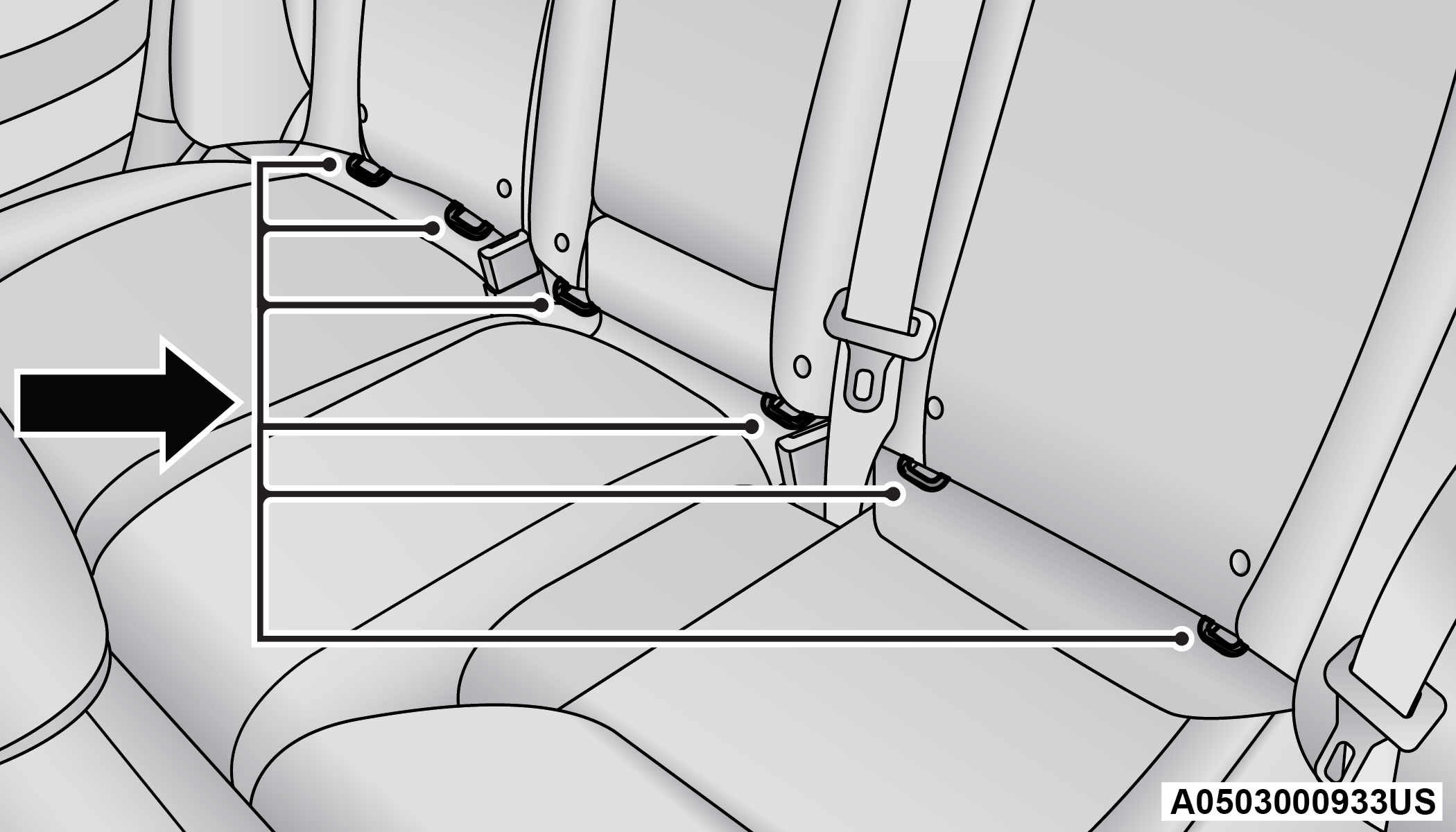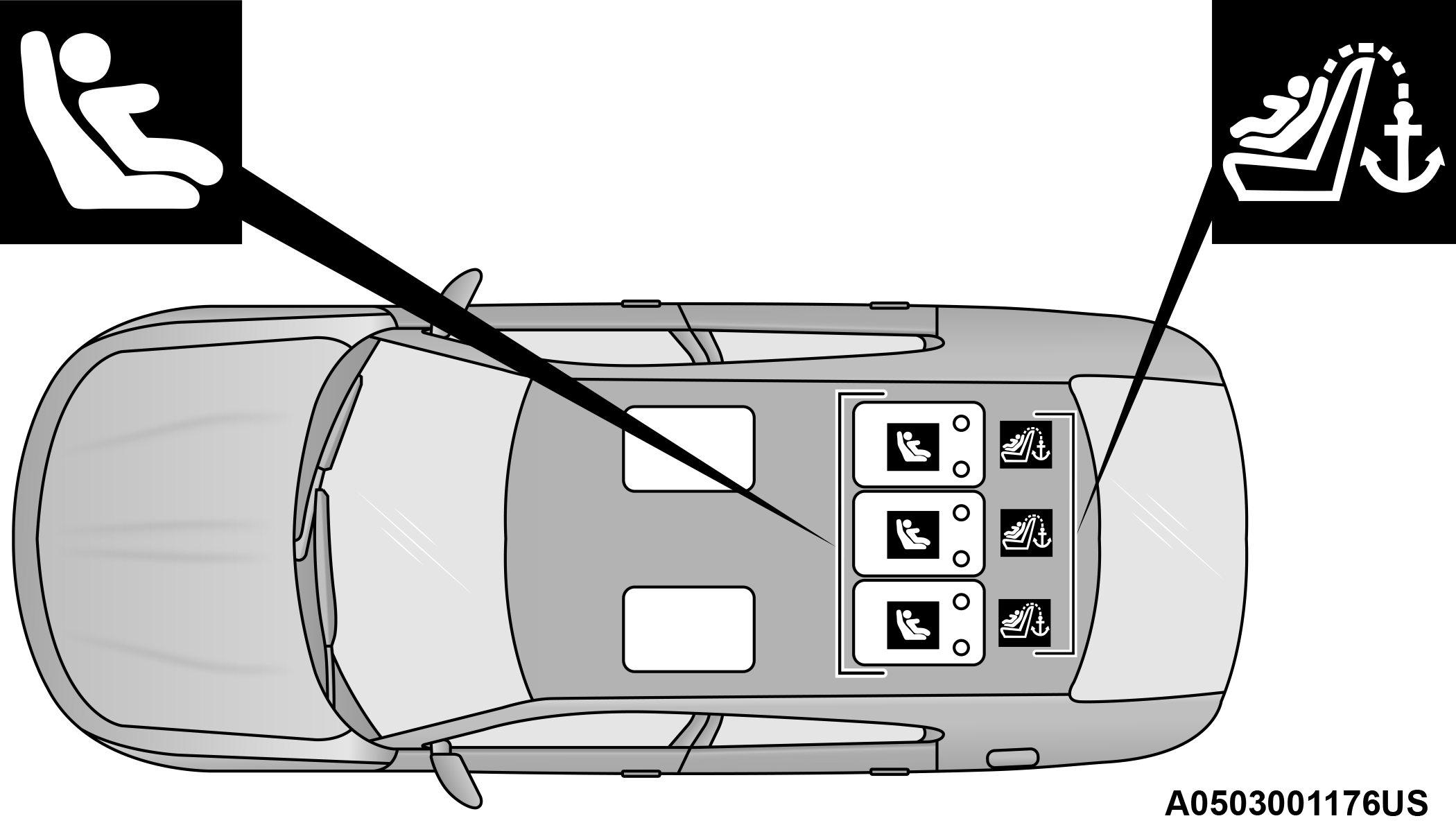 LATCH POSITIONS FOR INSTALLING CHILD RESTRAINTS IN THIS VEHICLE
