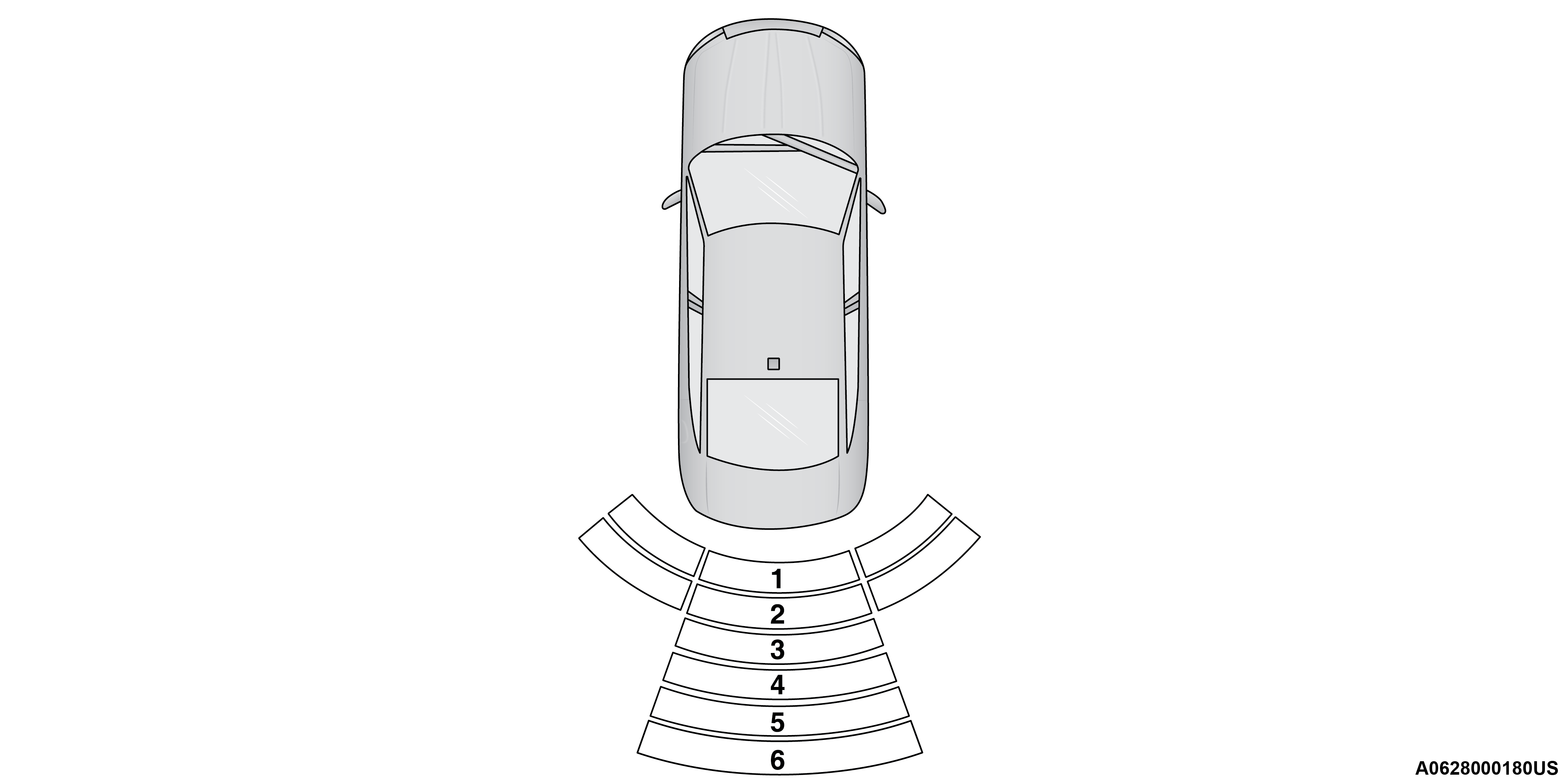 The system will indicate a detected obstacle by showing a single arc in the left and/or right front or rear regions based on the object’s distance and location relative to the vehicle.