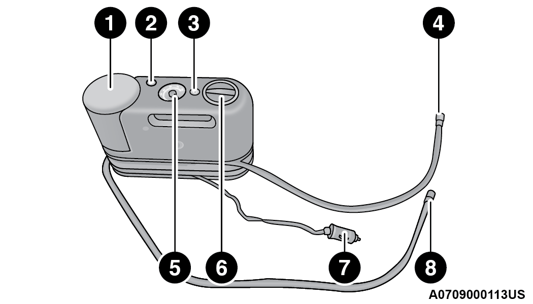 7 — Power Plug (located on the bottom side of the Tire Service Kit) |
