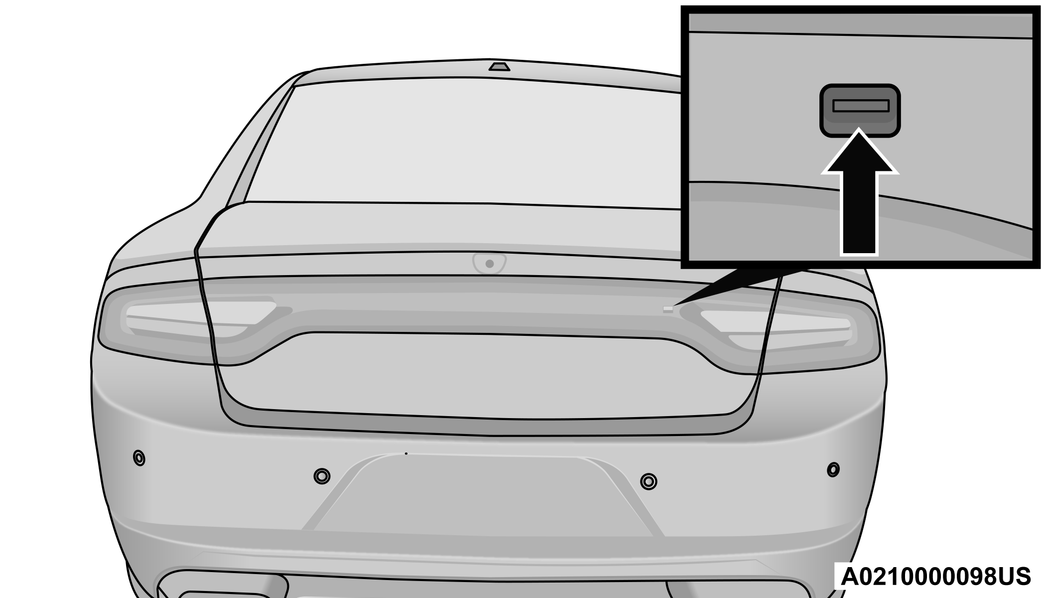 Push the trunk Passive Entry button which is located on the right side of the trunk lid. This button will release the trunk when the vehicle is unlocked, or when the vehicle is locked and a valid Passive Entry key fob is within 5 ft (1.5 m) of the trunk.