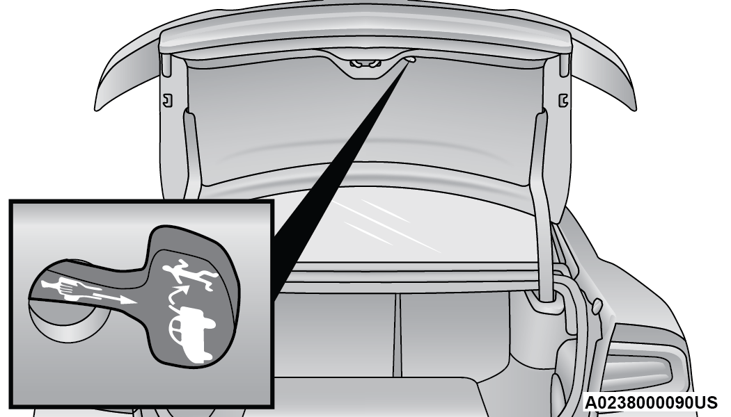 As a security measure, a trunk internal emergency release lever is built into the trunk latching mechanism. In the event of an individual being locked inside the trunk, the trunk can be opened by actuating the glow-in-the-dark handle attached to the trunk latching mechanism.