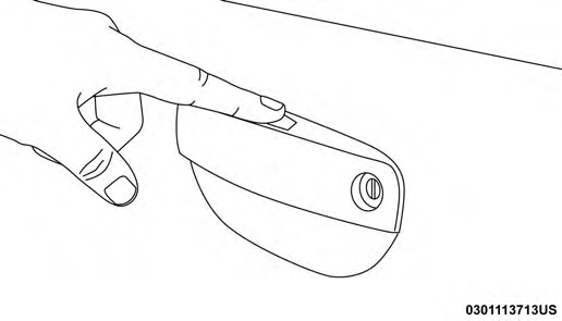 NOTE: If “Unlock All Doors 1st Press” is programmed, all doors will unlock when you grab hold of the front driver’s door handle. For further information regarding selecting “Unlock Driver Door 1st Press” and “Unlock All Doors 1st Press,” refer to “Uconnect Settings” in “Multimedia”.