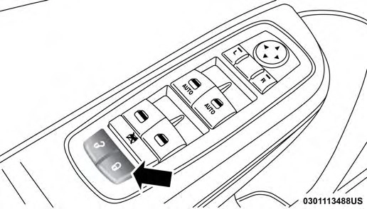 If you push the power door lock switch while the ignition is in the ACC or ON/RUN position, and any front door is open, the power locks will not operate. This prevents you from accidentally locking the key fob in the vehicle. Placing the ignition in the OFF position or closing the door will allow the locks to operate. If the driver door is open, and the ignition is in the ACC or ON/RUN position, a chime will sound as a reminder to remove the key fob.