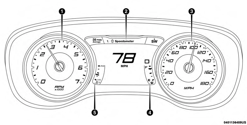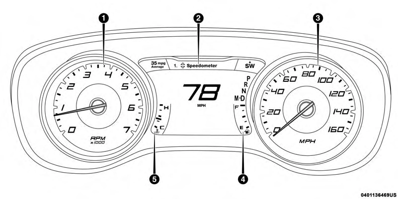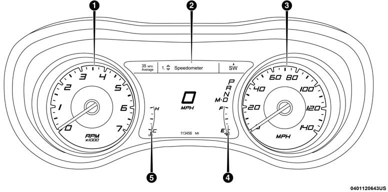 When the appropriate conditions exist, this display shows the instrument cluster display messages. Refer to “Instrument Cluster Display” in “Getting To Know Your Instrument Panel” for further information.