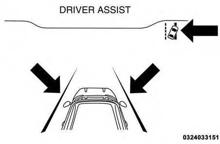 When the LaneSense system senses the lane has been approached and is in a lane departure situation, the left thick lane line flashes yellow (on/off) and the left thin