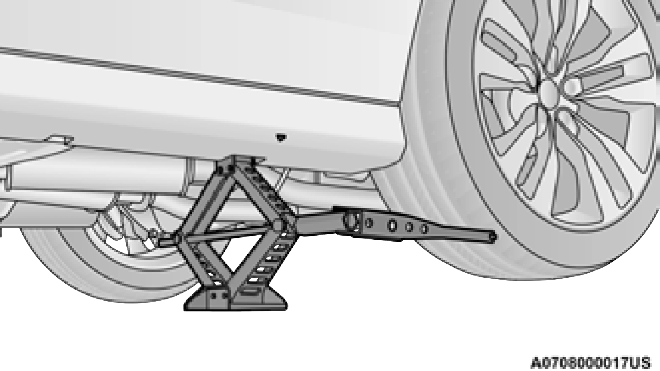 - Place the jack underneath the lift area that is closest to the flat tire. Turn the jack screw clockwise to firmly engage the jack saddle with the lift area of the sill flange.