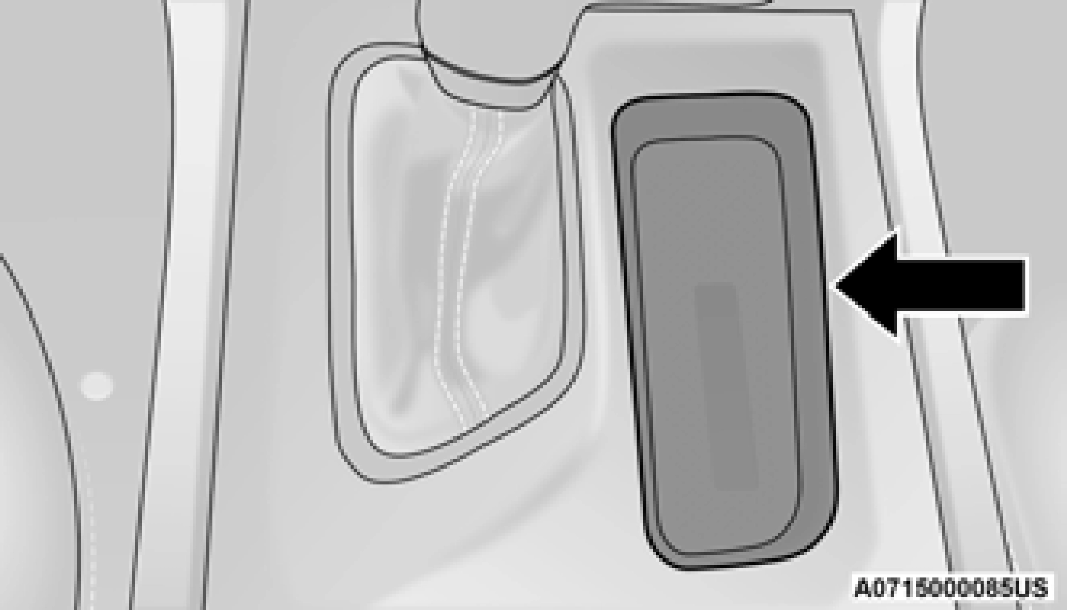 Tuck the tether strap into the base of the console. Reinstall the Manual Park Release cover and the console storage bin.
