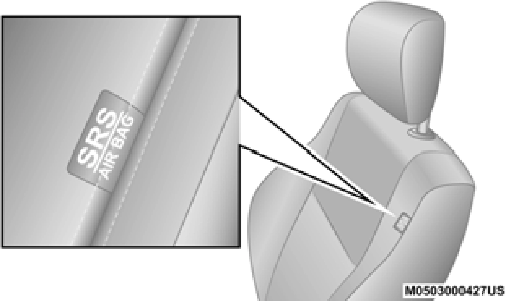 When the SAB deploys, it opens the seam on the outboard side of the seatback’s trim cover. The inflating SAB deploys through the seat seam into the space between the occupant and the door. The SAB moves at a very high speed and with such a high force that it could injure occupants if they are not seated properly, or if items are positioned in the area where the SAB inflates. Children are at an even greater risk of injury from a deploying air bag.