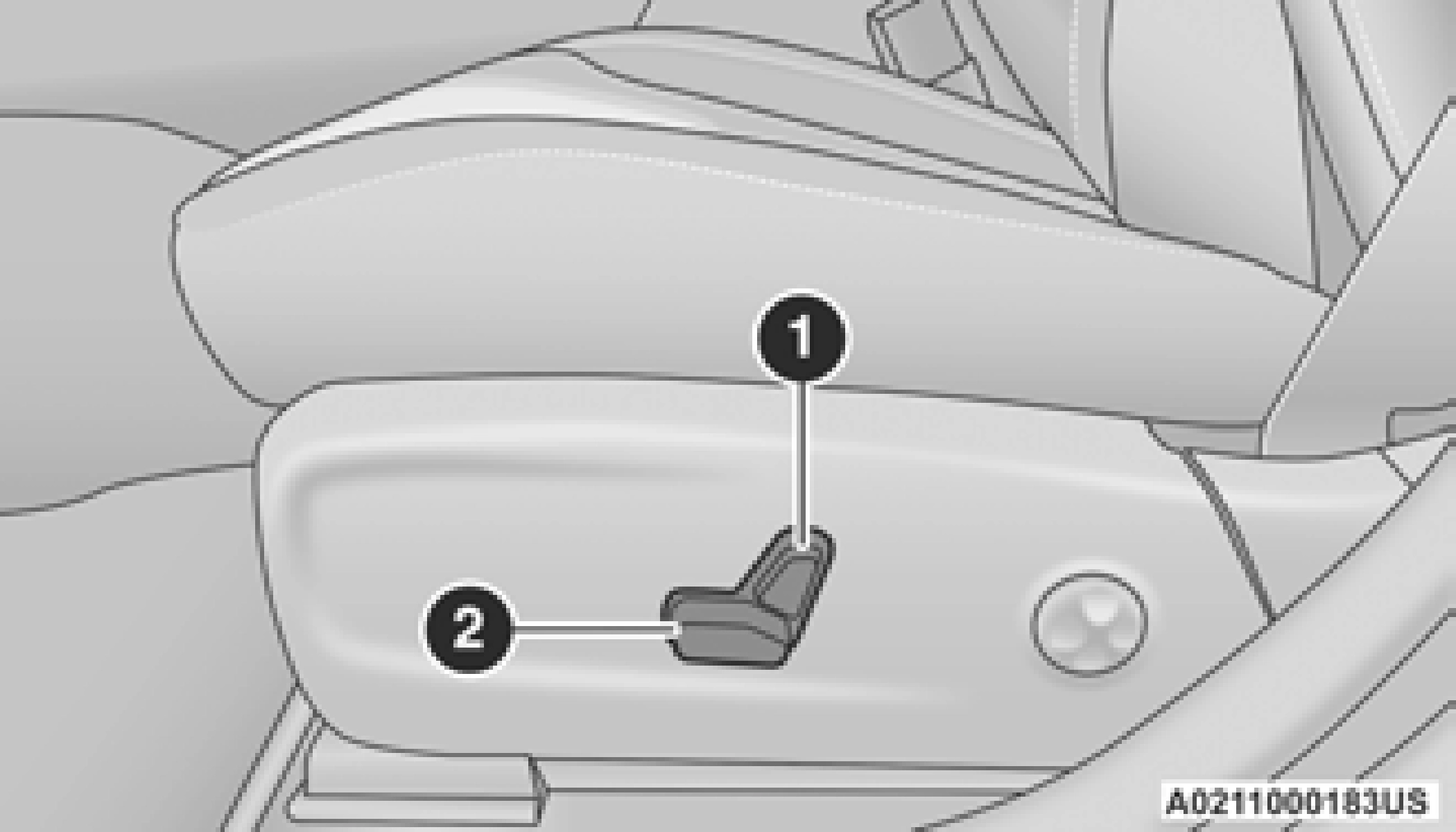 The height of the seats can be adjusted up or down. Pull upward or push downward on the seat switch; the seat will move in the direction of the switch. Release the switch when the desired position has been reached.