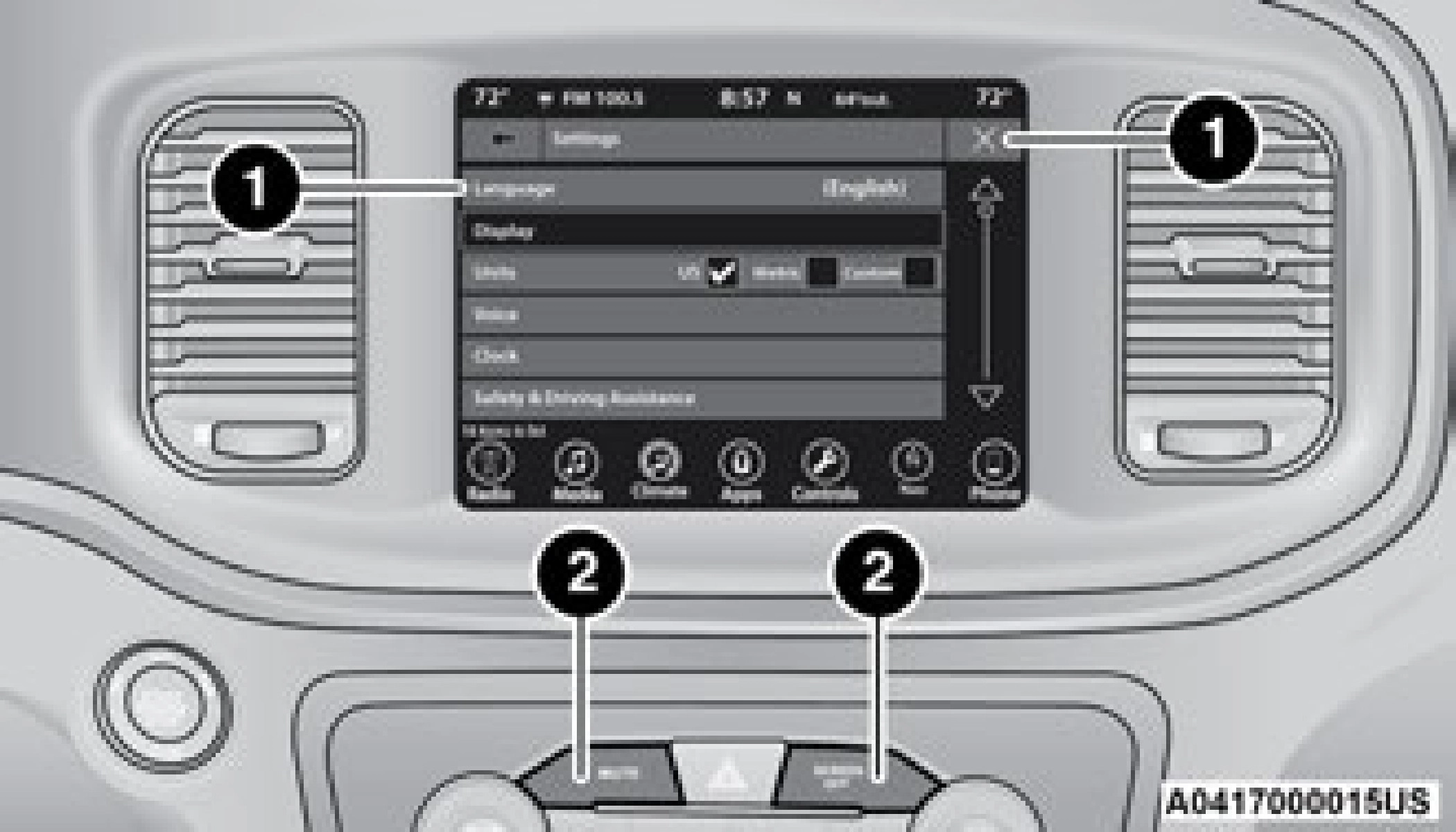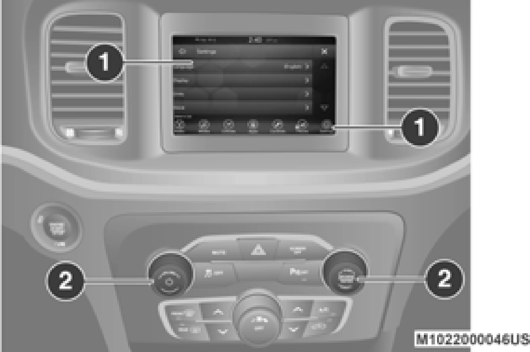 1 — Uconnect Buttons On The Touchscreen 2 — Uconnect Buttons On The Faceplate