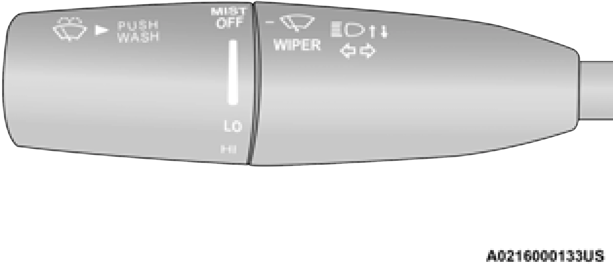 Rotate the end of the lever downward to the MIST position to activate a single wipe cycle to clear off road mist or spray from a passing vehicle. The wipers will continue to operate until you release the multifunction lever.