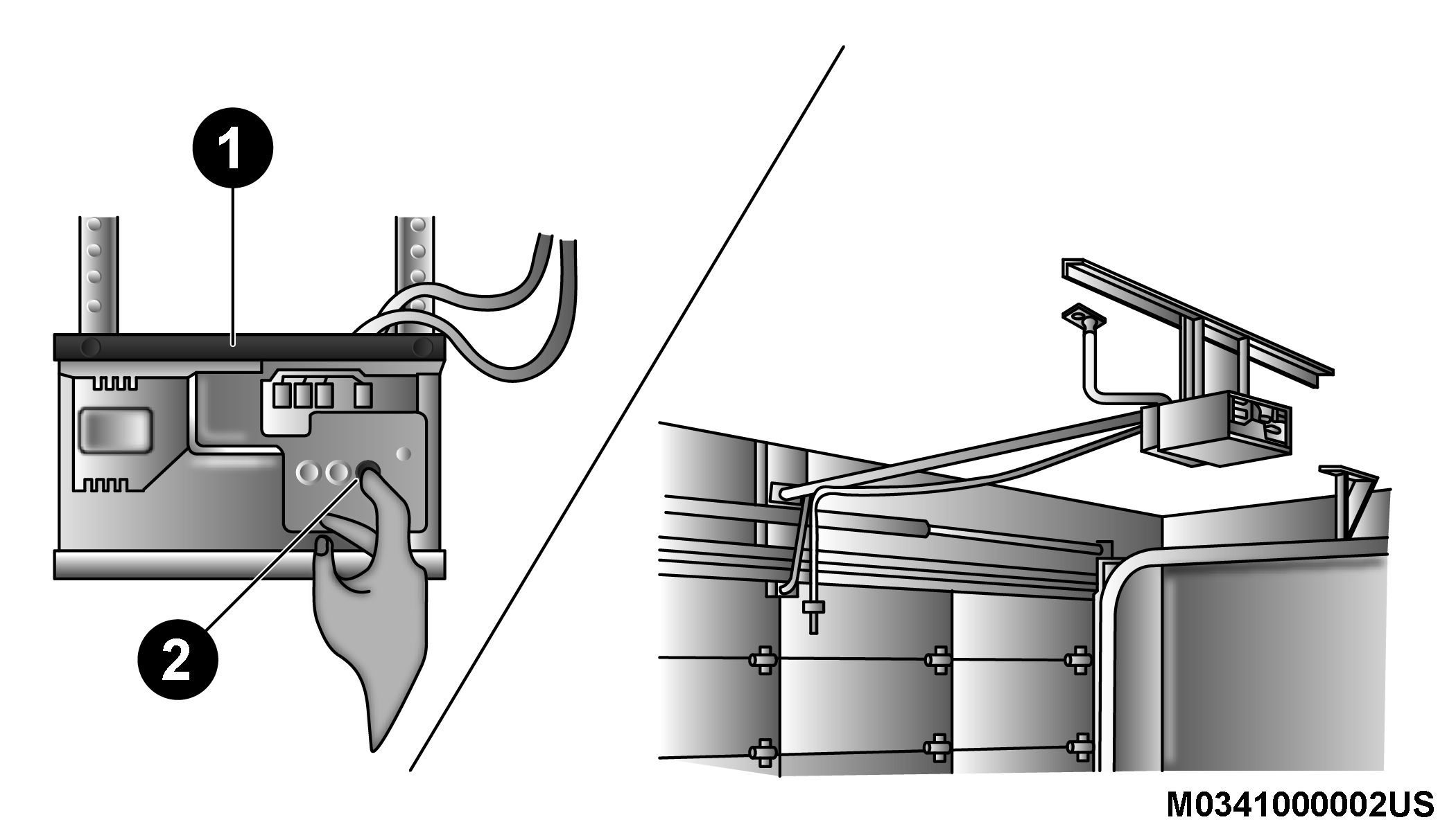 At the garage door opener (in the garage), locate the “LEARN” or “TRAINING” button. This can usually be found where the hanging antenna wire is attached to the garage door opener/device motor. Firmly push and release the “LEARN” or “TRAINING” button. On some garage door openers/devices there may be a light that blinks when the garage door opener/device is in the LEARN/TRAIN mode.