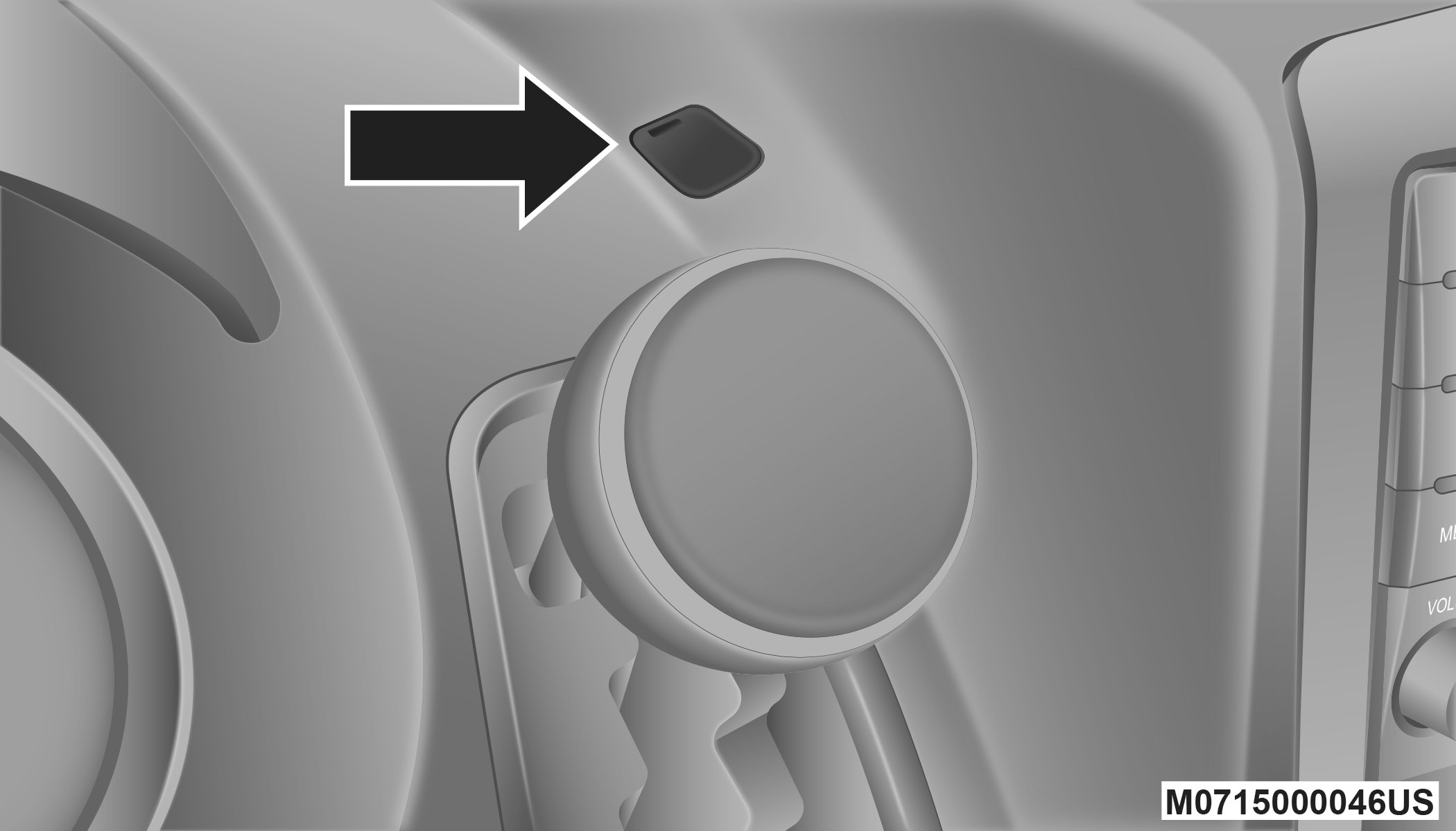 Using a small screwdriver or similar tool, remove the gear selector override access cover (located near the top right of the gear selector in the instrument panel).