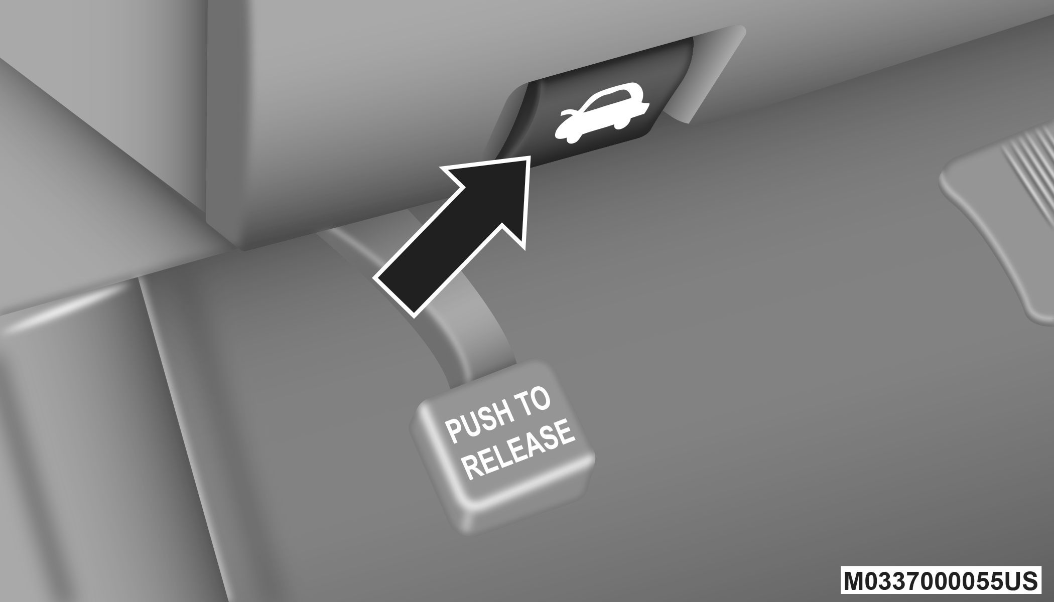To open the hood, two latches must be released.