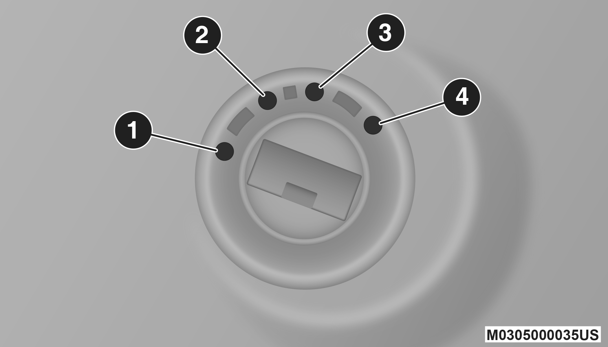The Wireless Ignition Node (WIN) operates similar to an ignition switch. It has four operating positions, three with detents and one that is spring-loaded. The detent positions are OFF, ACC, and ON/RUN. The START position is a spring-loaded momentary contact position. When released from the START position, the switch automatically returns to the ON/RUN position.