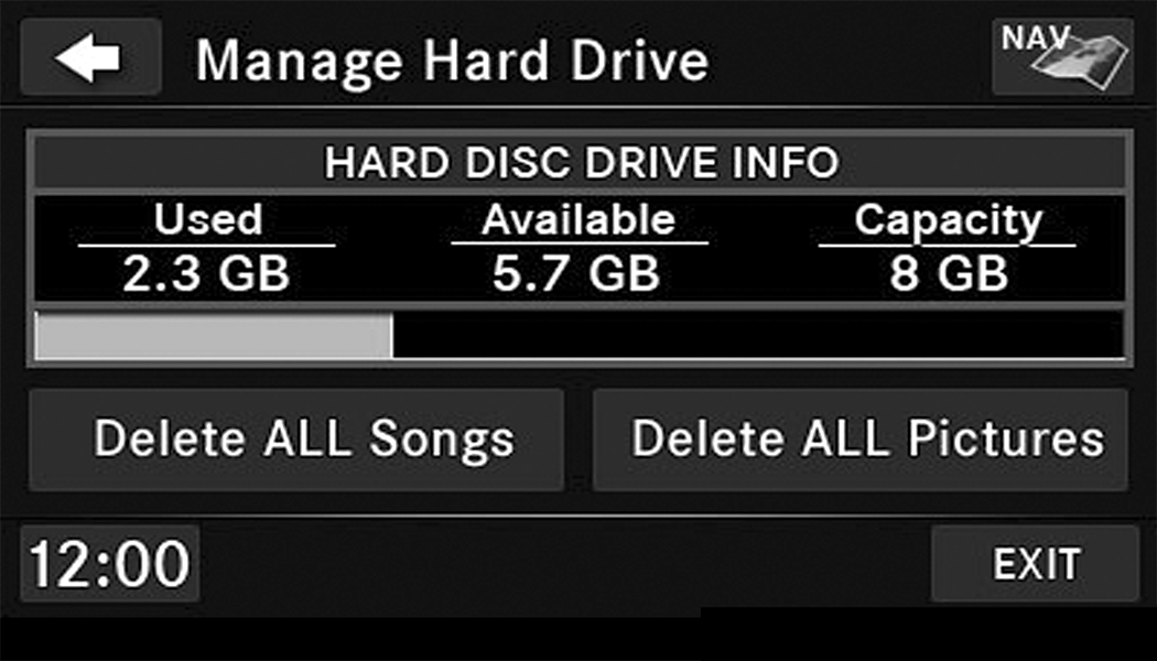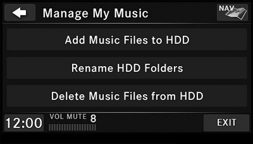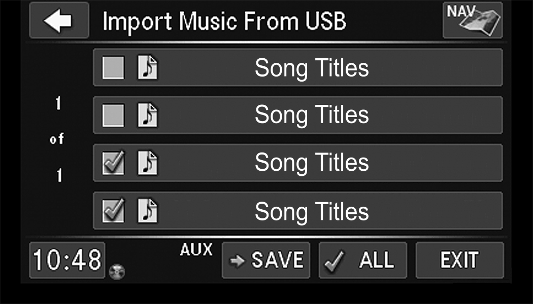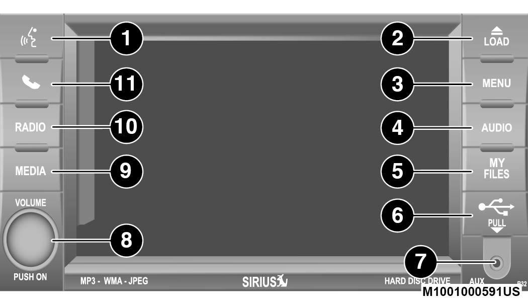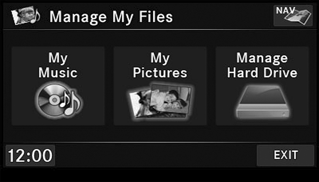 Push the My Files button on the faceplate to manage your music and picture files on the internal storage drive.