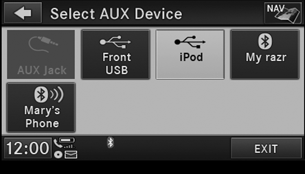 Connect an external audio device into the AUX Input (e.g., MP3 player, video game) to play the device audio through the car audio system.