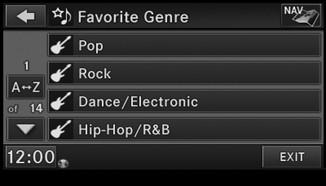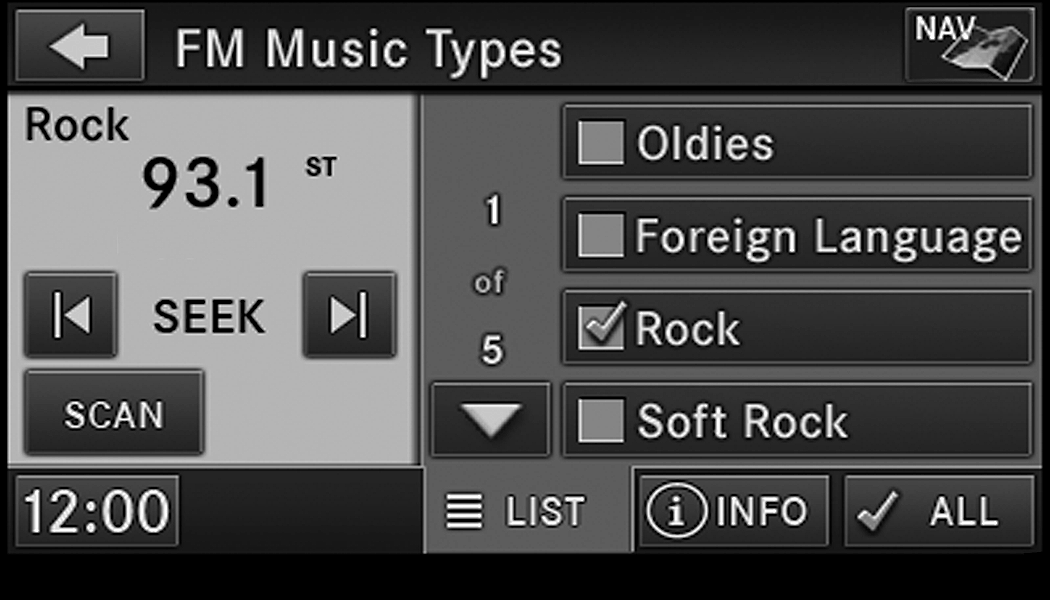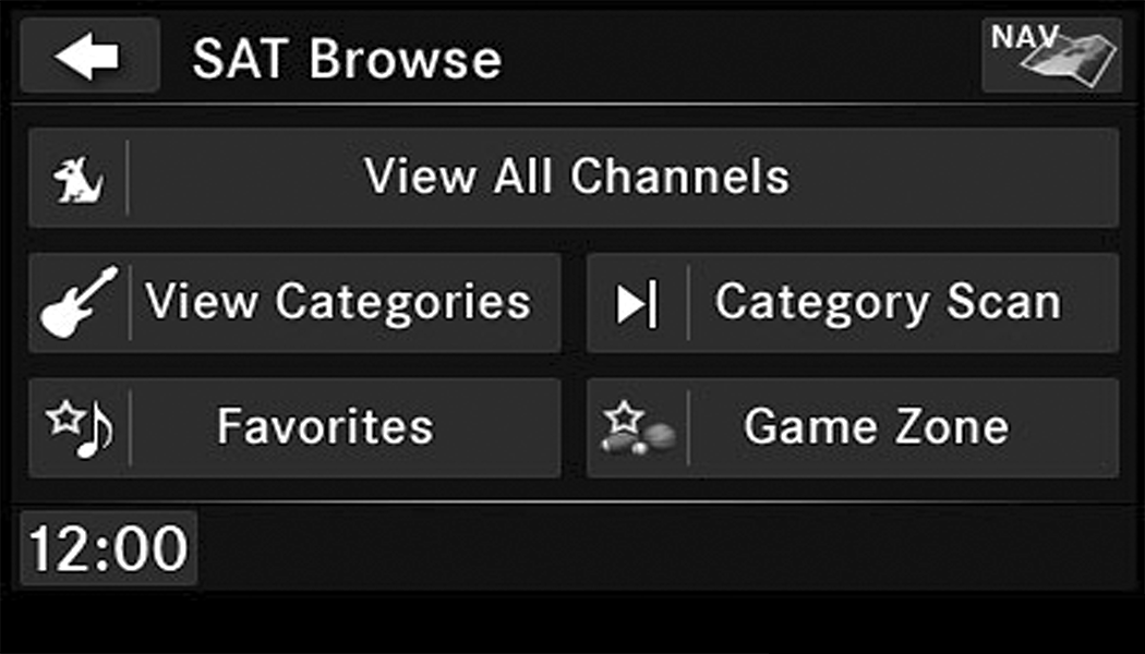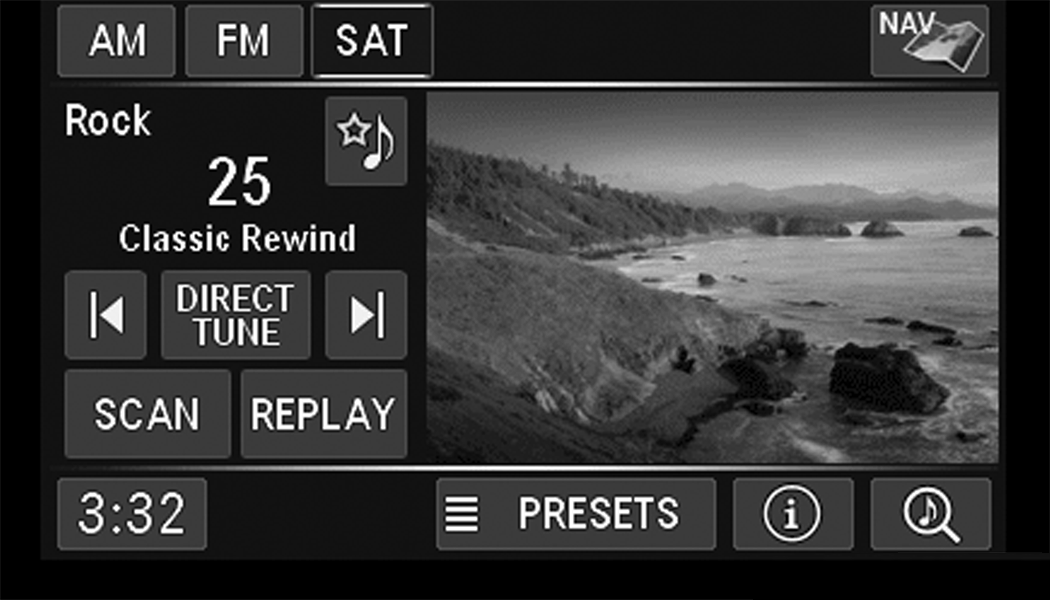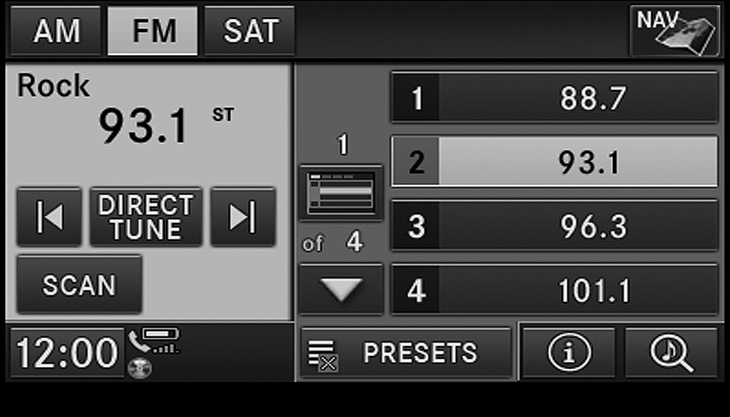 Push the Radio button to display AM, FM, or SAT.