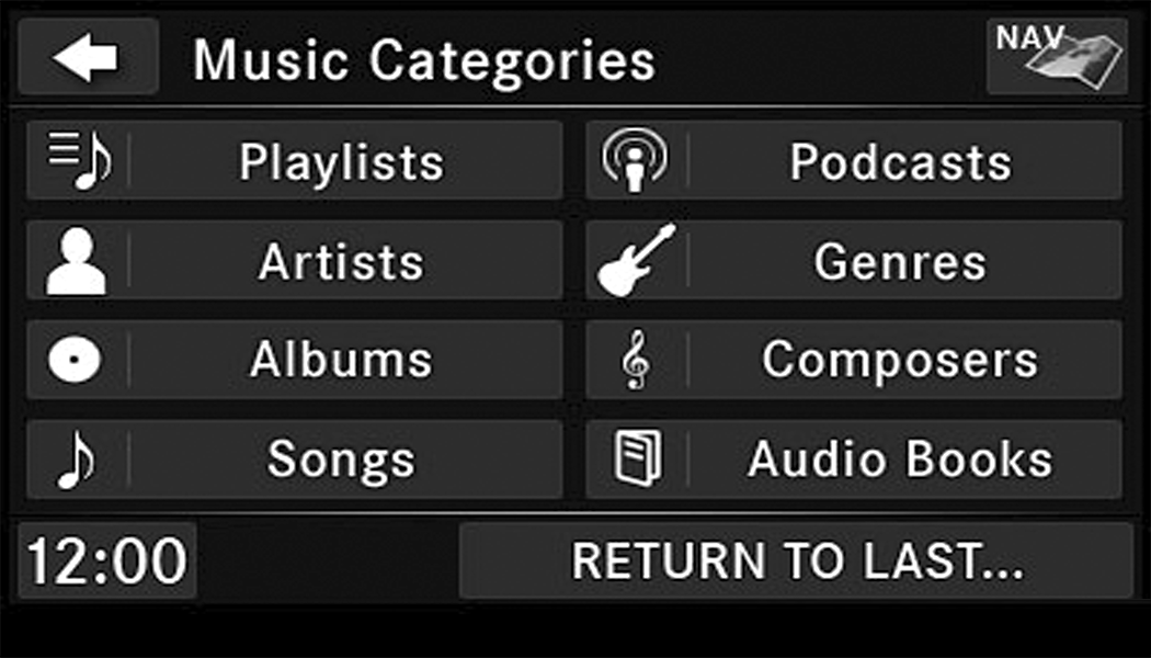 If you are viewing the NAV screen (Radio 430 Nav only), pushing the Media button will return you to the Media mode screen.