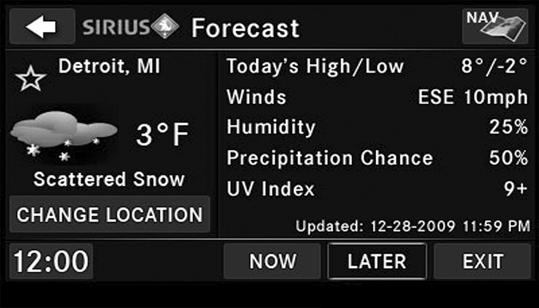 SiriusXM® Travel Link brings a wealth of useful information into your vehicle and right to your fingertips.