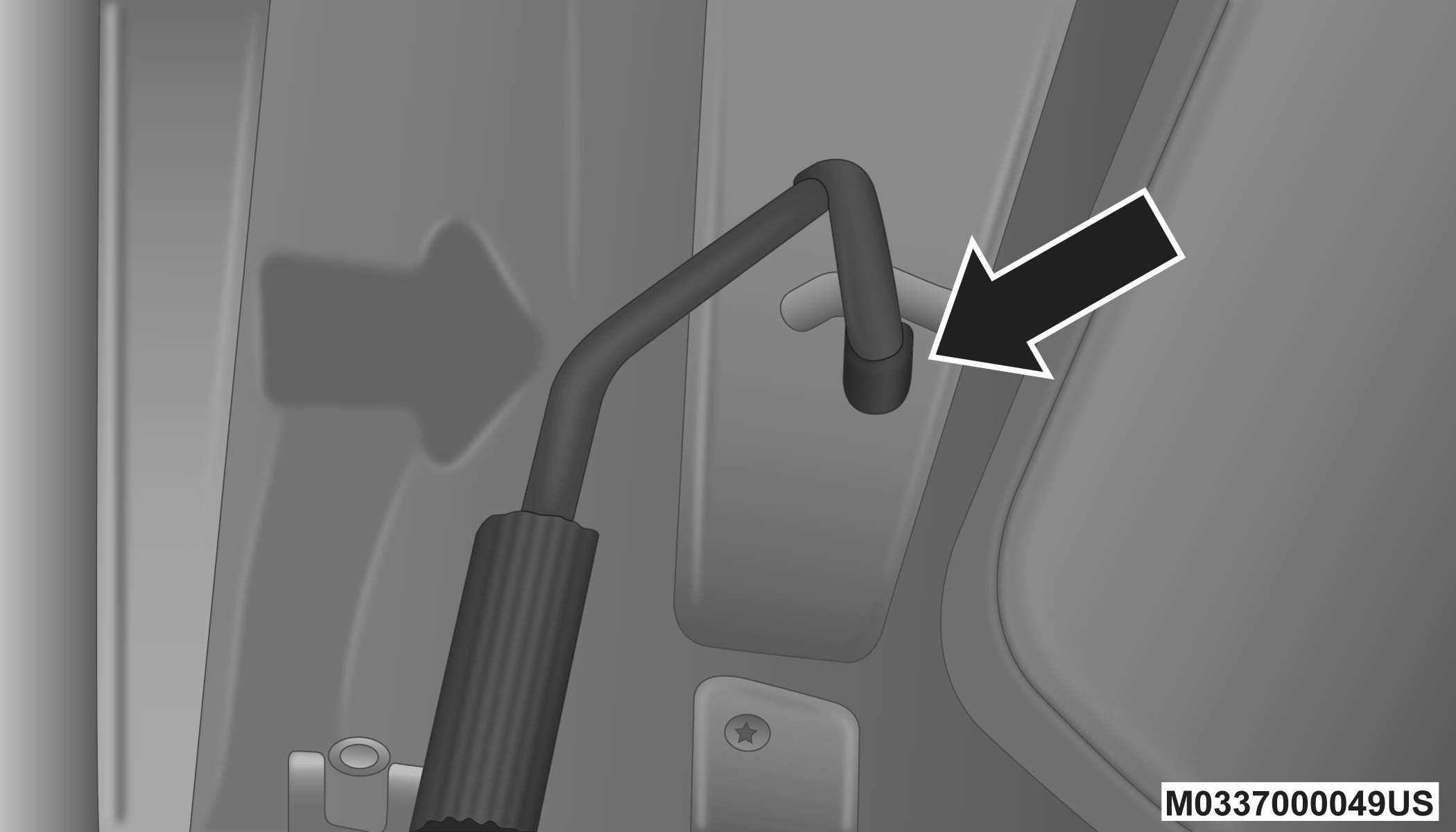 Use the hood prop rod to secure the hood in the open position. Place the upper end of the prop rod in the hole on the underside of the hood.