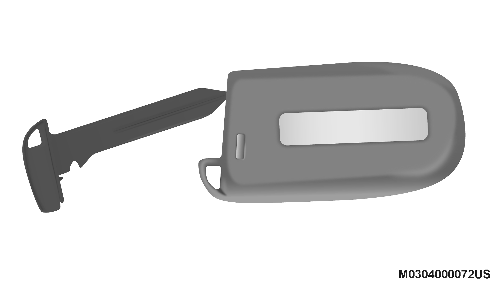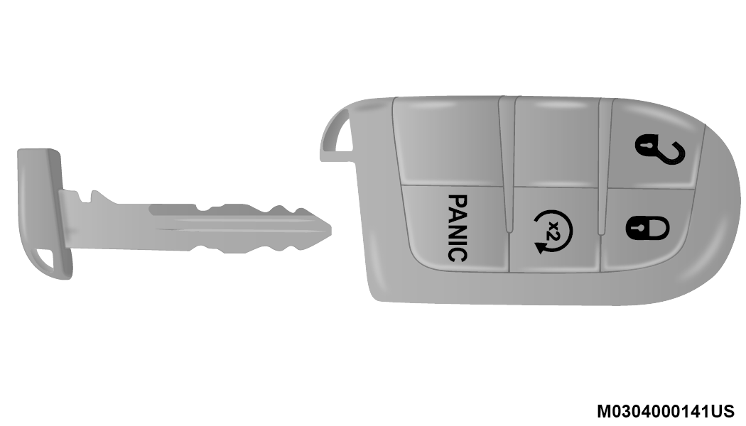 The Remote Keyless Entry key fob also contains an emergency key, which stores in the rear of the key fob.