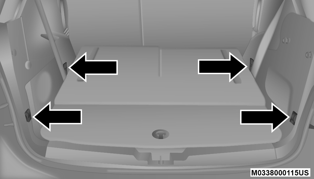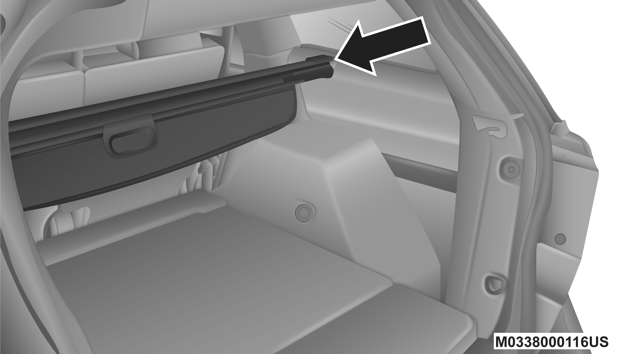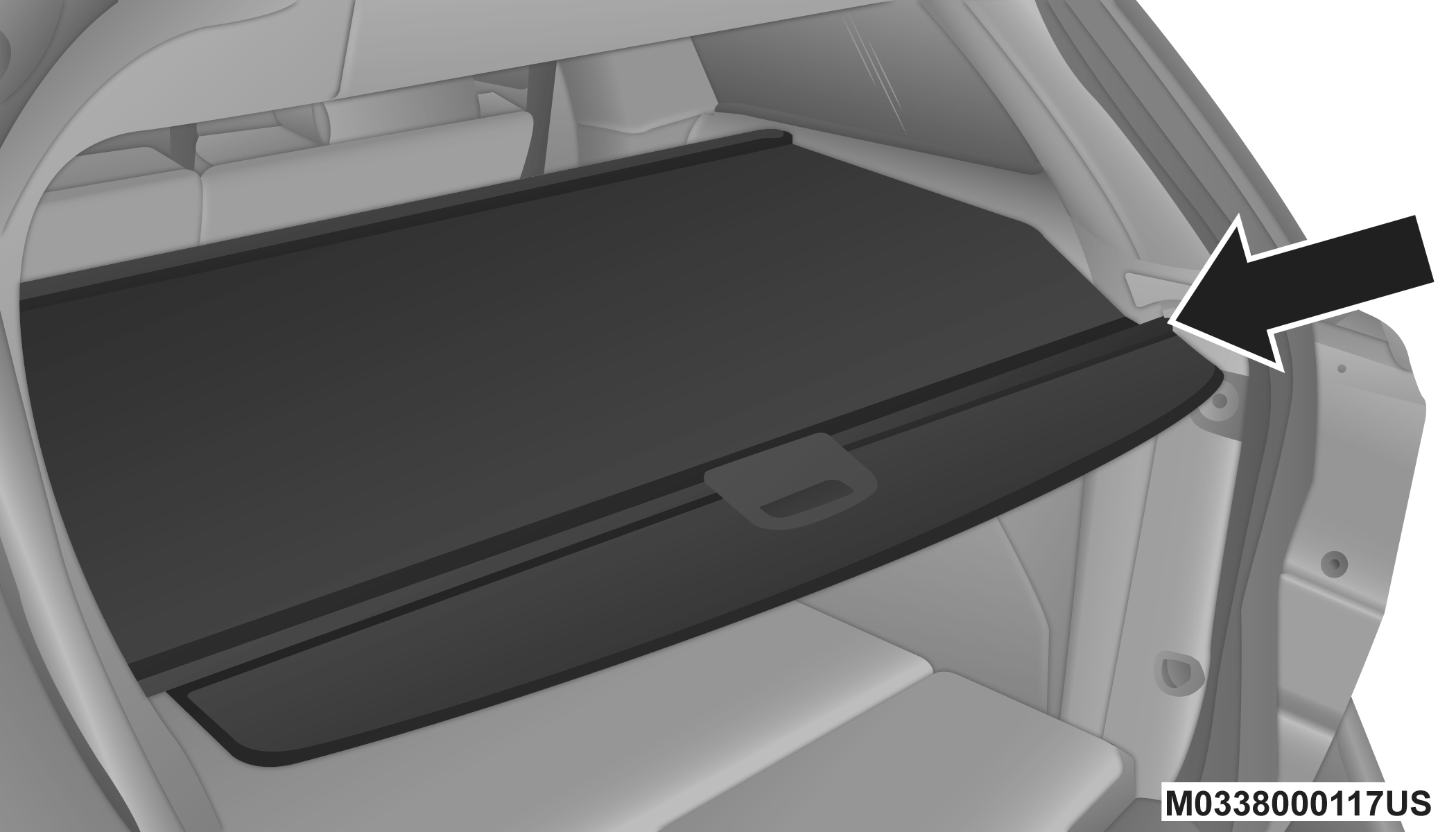 The cover, when extended, covers the cargo area to keep items out of sight. Notches in the trim panels near the liftgate opening secure the extended cover in place.